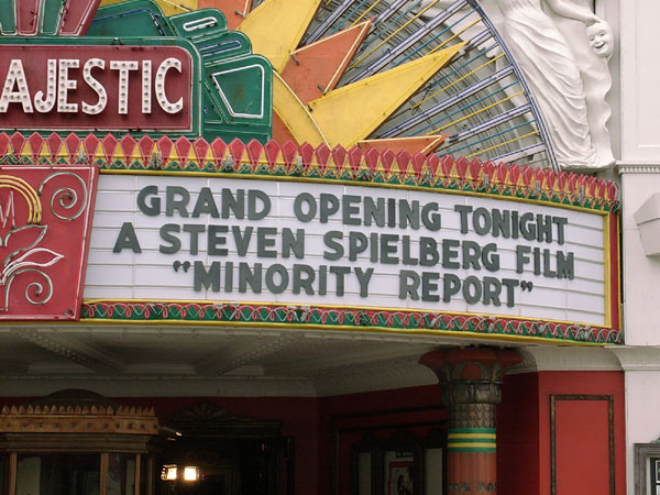 ![]() From left to right: Marquee night shot, "Minority Report" marquee, and Town Hall basement (Fairgrounds). © Anne & Jenn |
