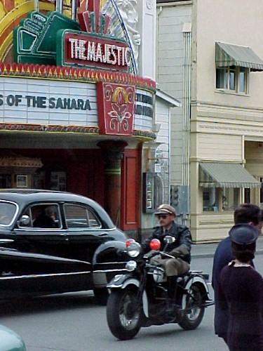 16 Apr 2001 After a prolonged weekend, work on the set of "The Majestic" restarted Monday, and thanks to Ferndale Fritz, Lora Jabot & Mr. Cool, we have many details on that day's shoot to share with you.